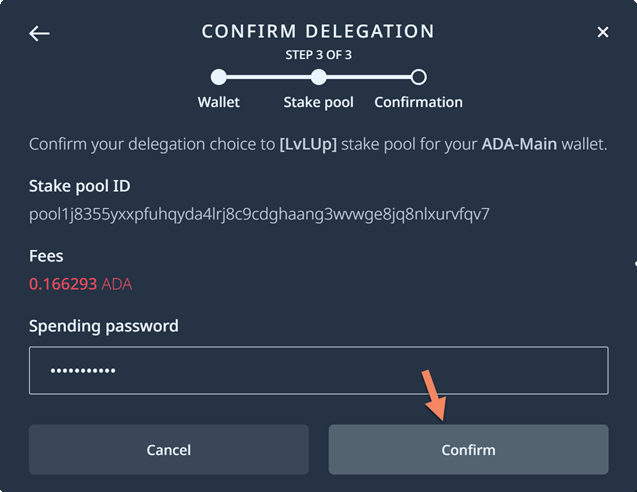 - Confirm with your password and click on Delegate