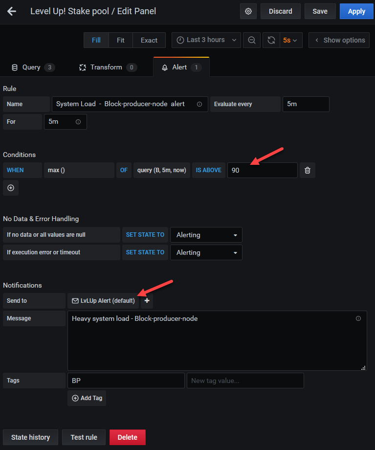 Click on Save button. - When you see a green heart, that means your alert rule conditions are met. If not, you will receive notification by email and you will see a broken red heart.