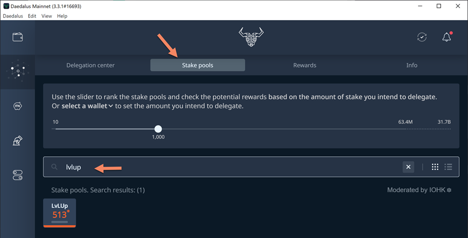 - Click on Stake pools and search with keyword lvlup