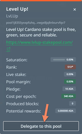 - Click on lvlup icon and click on Delegate to this pool