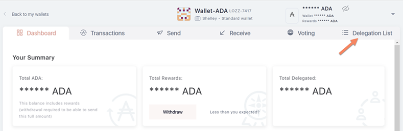- Choose the wallet you want to delegate and click on Delegation List