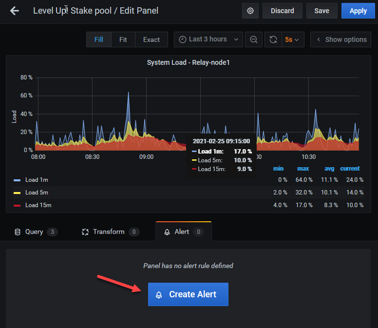 If the test fail, go back and check your configuration file grafana.ini. - You can now add an Alert rule to a panel.